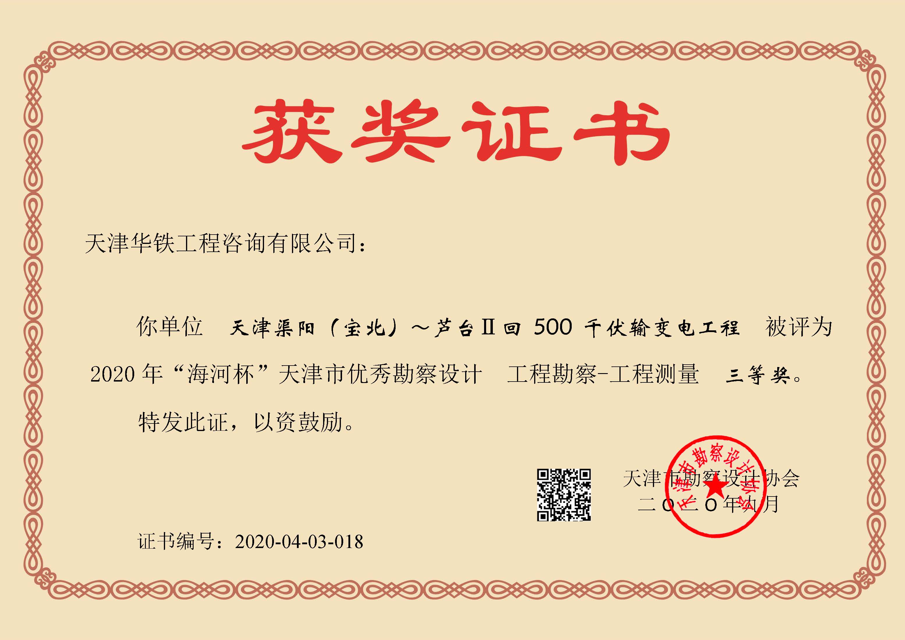 近日,2020年“海河杯”天津市优秀勘察设计奖评选名单揭晓。我公司在此次奖评选活动中荣获两项三等奖。项目名称如下: