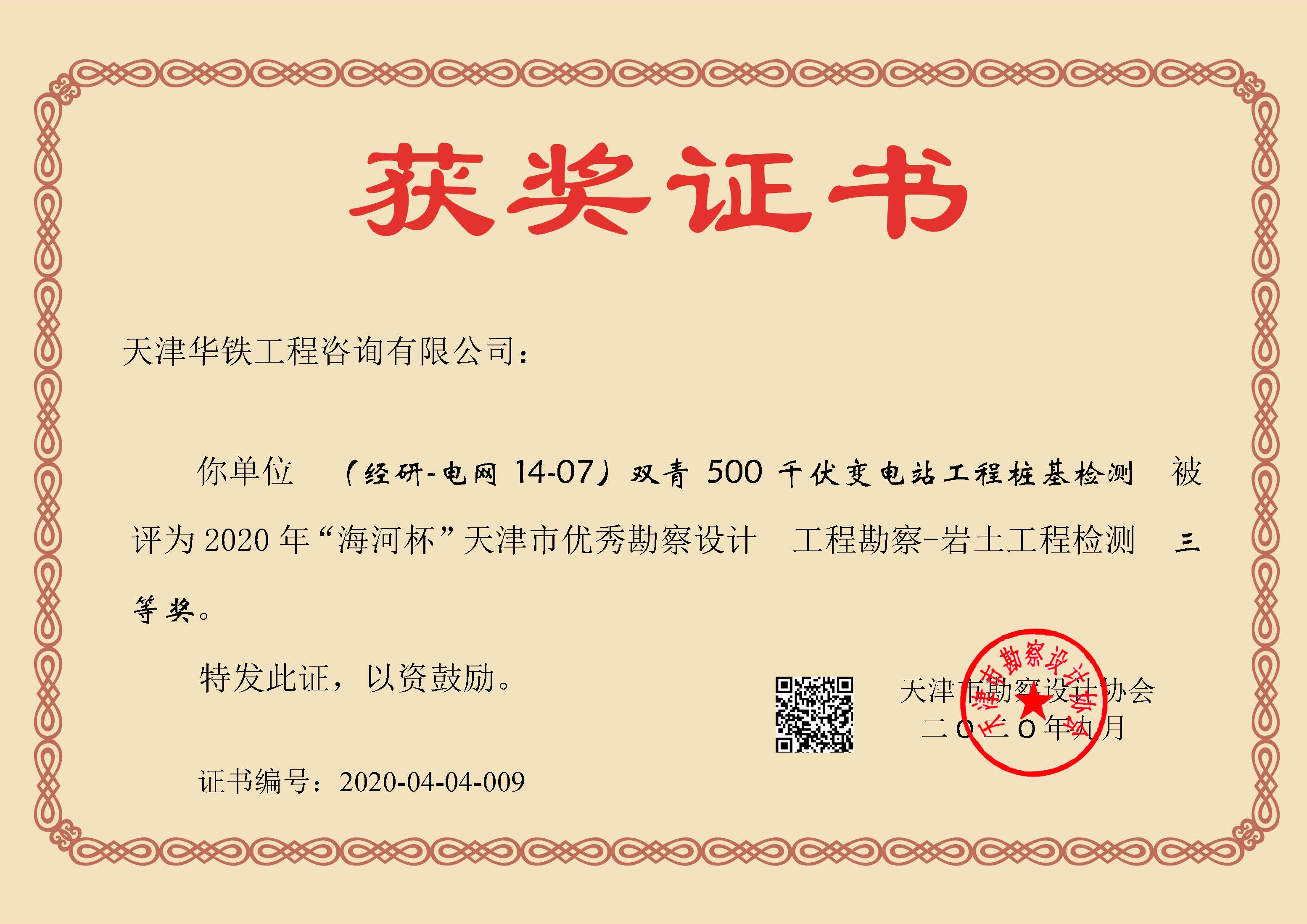 热烈祝贺我公司两项业绩荣获2020年“海河杯”天津市优秀勘察设计三等奖