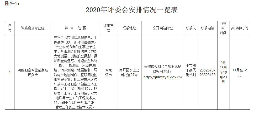 为做好2020年度天津市工程技术系列测绘勘察专业职称评审工作,按照《市人社局关于开展2020年度专业技术职称申报评审工作的通知》(津人社办发〔2020〕117号)要求,结合我市测绘勘察行业专业技术人员队伍建设情况,特制定本方案,具体内容如下: